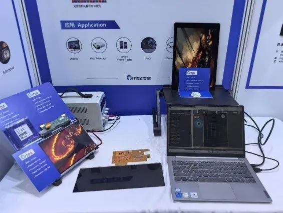 本次參展的MEMS微振鏡產(chǎn)品1mm、4mm、8mm規(guī)格型號均有亮相。其中,1mm小尺寸微振鏡結(jié)合RGB激光束,成功實(shí)現(xiàn)LBS(Laser Beam Scanning,激光束掃描)方案,凸顯了產(chǎn)品高對比度、高能效、低成本等優(yōu)勢。展會上,觀眾們體驗(yàn)了該方案在汽車前擋風(fēng)玻璃上的投影效果,倍受矚目,引發(fā)眾多觀眾駐足欣賞。